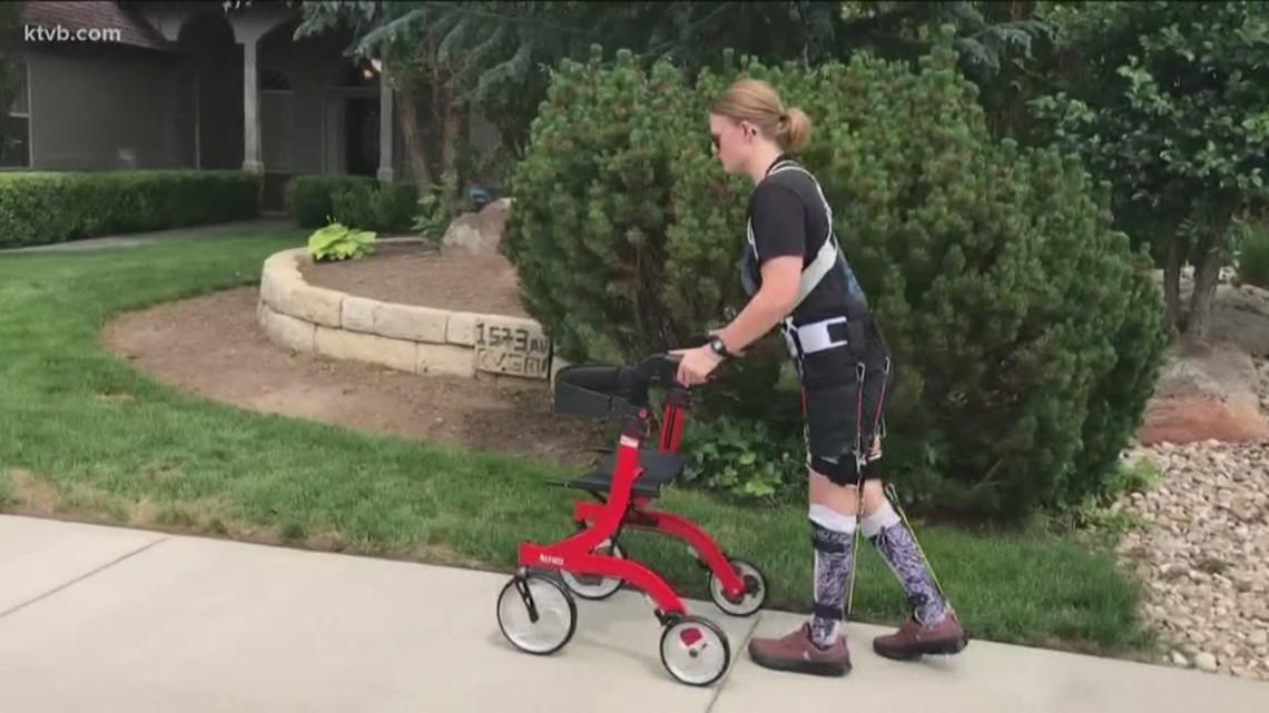 BOISE, Idaho — Eight months ago, a helicopter crashed in Malheur County, killing a man and injuring his daughter. Now, after fracturing her spine and losing some control of her muscles in her legs because of severe nerve damage, she is learning to walk again with the help of her physical therapist and a San Diego-based company.